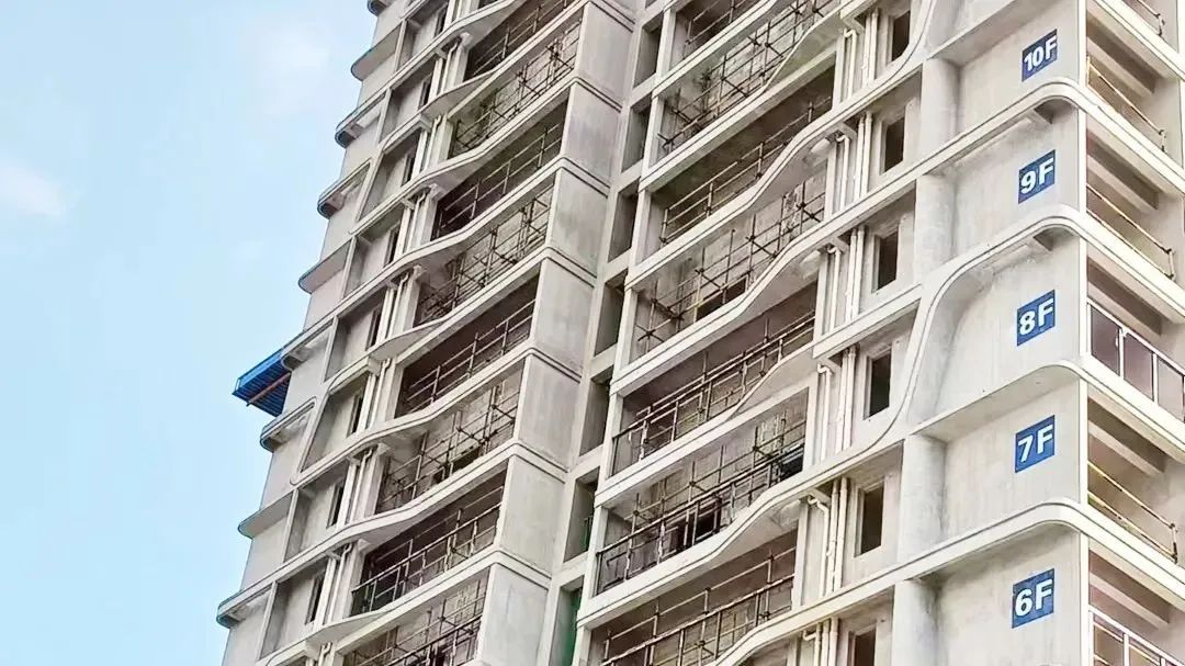 項目外線條為空間變化的圓弧結構,包含多層線條、圓弧斜柱、半圓弧立柱等,且6層循環(huán)變化、戶型奇偶變化疊加墻縮變。技術難度高,過程資源協(xié)調(diào)復雜。
