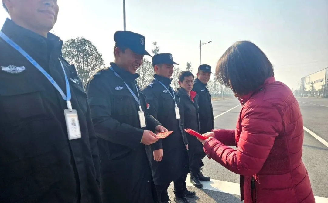在鑫政新能源產業園,執行總裁李佳帶來了集團的新年祝福,感謝所有在新春佳節堅持在崗,護衛園區安全、守衛生產一線的各位鑫政人,祝福大家龍年大吉、工作順心、萬事順遂, 共同度過一個歡樂、祥和、安全的新春佳節。